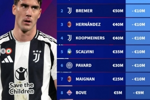 体育资讯3月30日讯 德转此前更新了意甲球员身价,并盘点了此次更新身价下跌最多的前十榜单,其中弗拉霍维奇居首,尤文球员在前十中占据5席,具体球员目前身价以及跌幅如下: